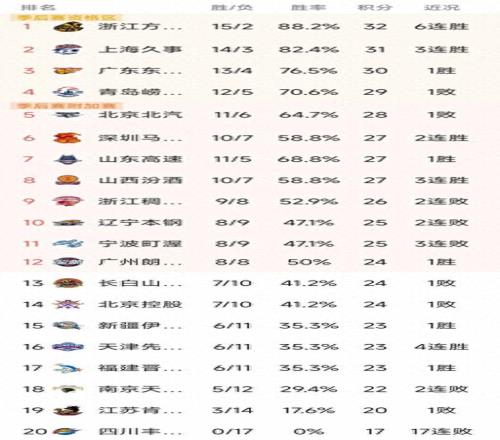CBA排名一夜大变!上海第2,北京第5,辽宁4分憾负,深圳绝杀